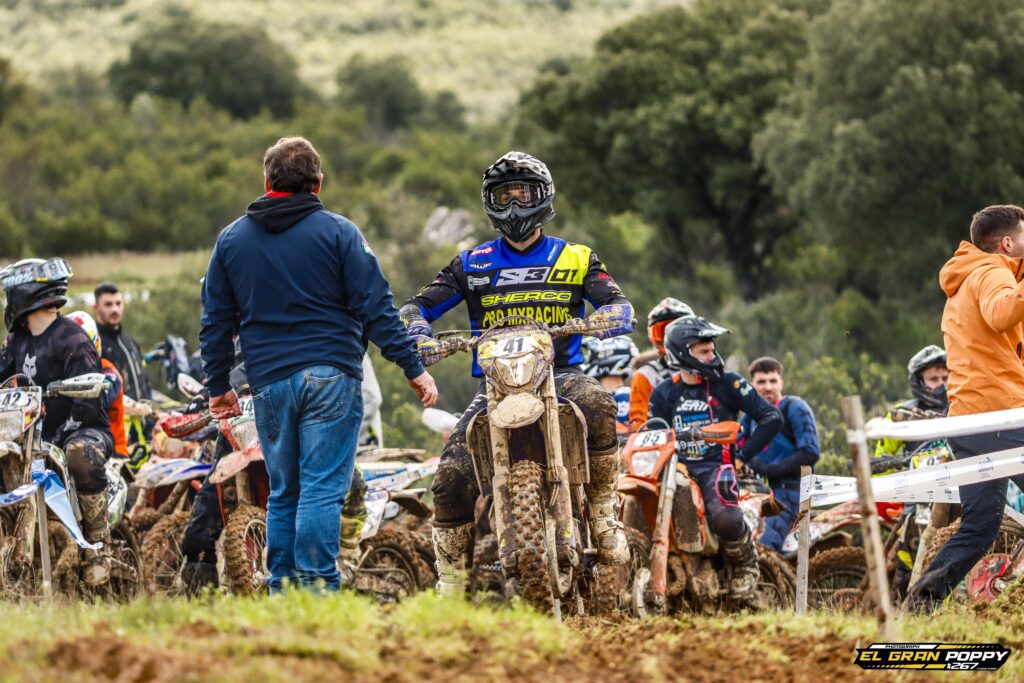 La prueba final del Nacional, en Los Navalmorales (Toledo), fue tan épica como cruel. Juanma rodaba toda la carrera en P1, pero un problema mecánico con el freno trasero, agravado por el barro, le hizo perder una posición en los compases finales.
